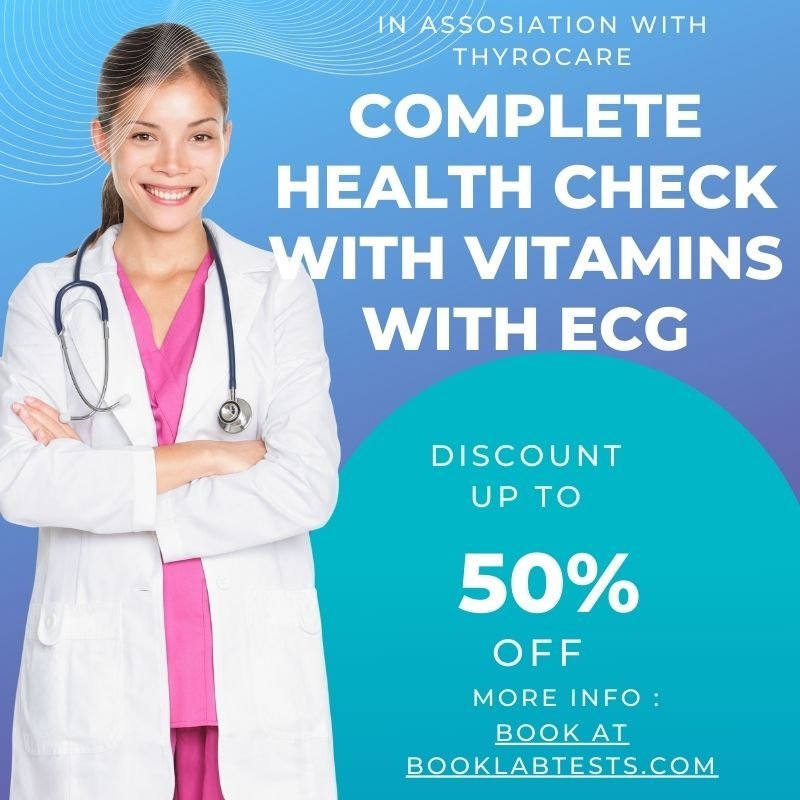 Sale!COMPLETE HEALTH CHECK WITH VITAMINS WITH ECG includes Carcino Embryonic Antigen (cea),Apo B / Apo A1 Ratio (apo B/a1),Apolipoprotein – A1 (apo-a1),Apolipoprotein – B (apo-b) + 119 Tests. Home sample collection available. Reports with certified lab quality.