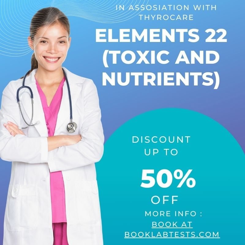 ELEMENTS 22 (TOXIC AND NUTRIENTS) includes Silver,Aluminium,Arsenic,Barium + 18 Tests. Home sample collection available. Reports with certified lab quality.