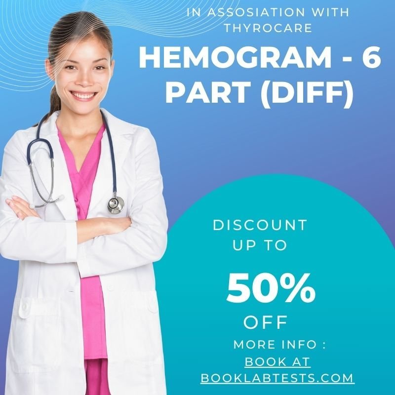 HEMOGRAM – 6 PART (DIFF) includes Basophils – Absolute Count,Eosinophils – Absolute Count,Lymphocytes – Absolute Count,Monocytes – Absolute Count + 26 Tests. Home sample collection available. Reports with certified lab quality.
