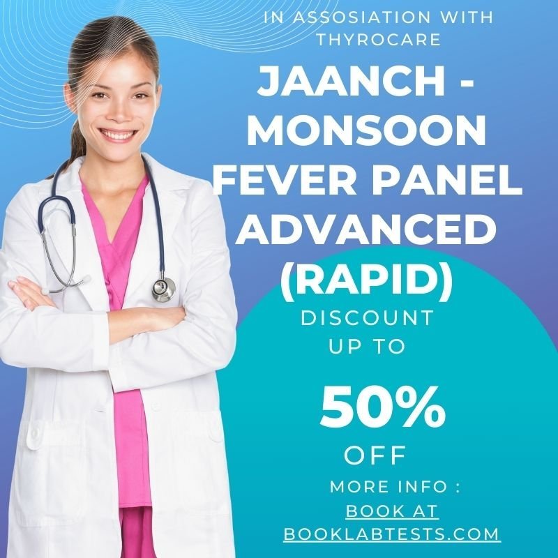 JAANCH – MONSOON FEVER PANEL ADVANCED (RAPID) includes C-reactive Protein (crp),Basophils – Absolute Count,Eosinophils – Absolute Count,Lymphocytes – Absolute Count + 38 Tests. Home sample collection available. Reports with certified lab quality.