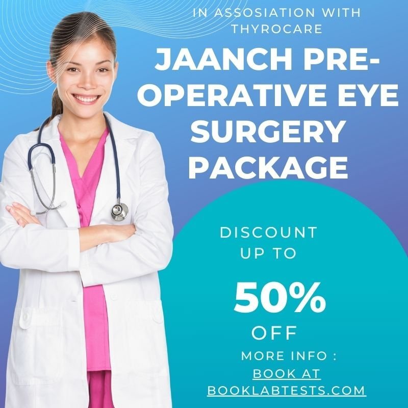 JAANCH PRE-OPERATIVE EYE SURGERY PACKAGE includes Basophils – Absolute Count,Eosinophils – Absolute Count,Lymphocytes – Absolute Count,Monocytes – Absolute Count + 60 Tests. Home sample collection available. Reports with certified lab quality.