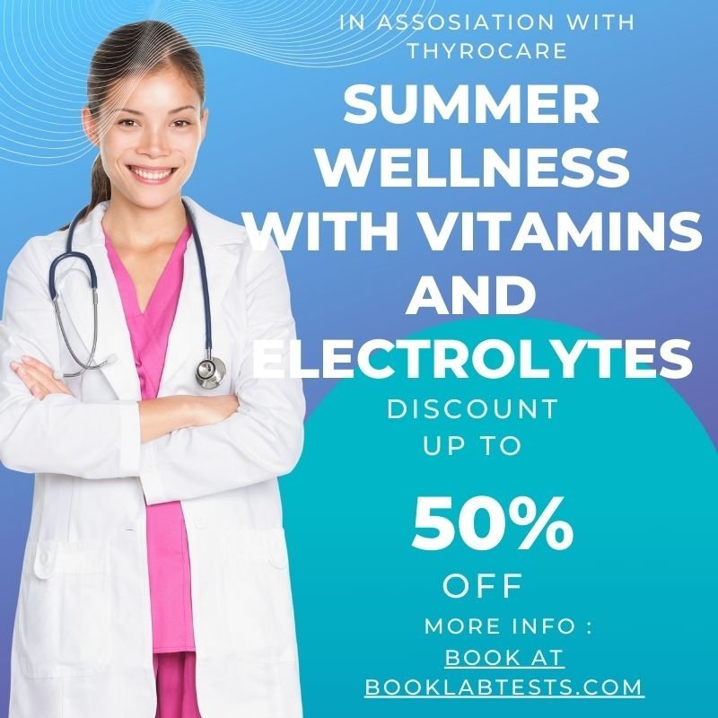 SUMMER WELLNESS WITH VITAMINS AND ELECTROLYTES includes Carcino Embryonic Antigen (cea),Basophils – Absolute Count,Eosinophils – Absolute Count,Lymphocytes – Absolute Count + 103 Tests. Home sample collection available. Reports with certified lab quality.